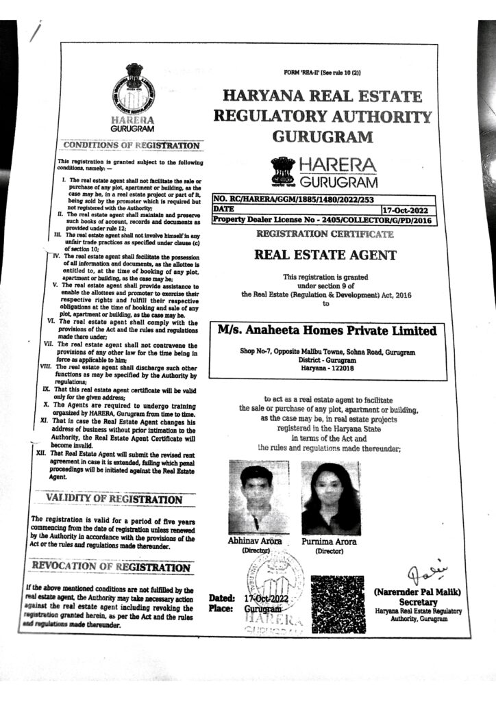 Authorized Channel Partner | Channel Partner RERA Number : RC/HARERA/GGM/1885/1480/2022/253